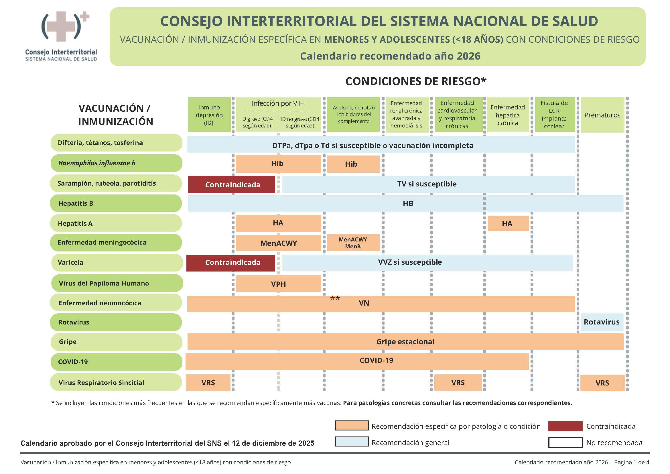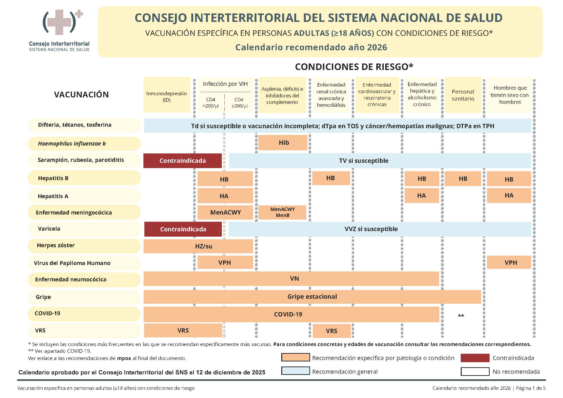 Vacunación en grupos de riesgo de todas las edades y en determinadas situaciones